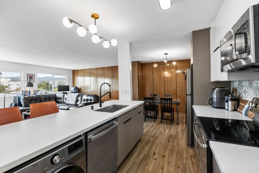 Welcome to this beautifully renovated two bedroom condo located in the highly desirable Adams Point neighborhood! This stylish and modern unit features an open-concept layout with sleek updates throughout, including double pane windows, luxury vinyl flooring, and designer light fixtures. The updated kitchen boasts European-style frameless cabinets, a tiled backsplash, quartz countertops, and gleaming stainless steel appliances. Enjoy the flexibility of a dedicated dining area and a convenient breakfast bar. The updated bathroom features a floating vanity and modern finishes. Additional highlights include an HOA-approved in-unit washer and dryer for added convenience and a dedicated parking space in the secure underground garage. THIS PROPERTY QUALIFIES FOR A $10,000 ACCESS GRANT!