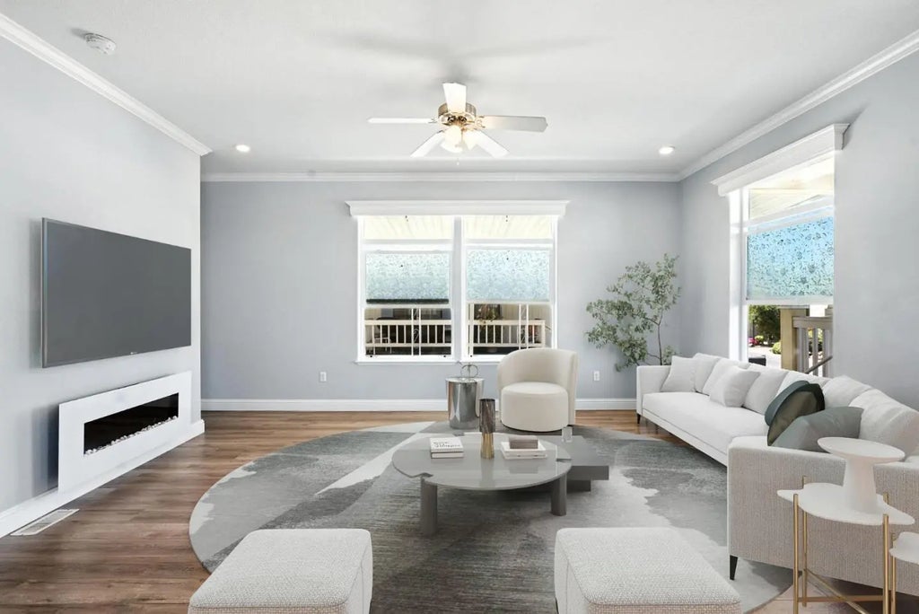 Welcome to a luxurious lifestyle in the prestigious Plaza del Rey community! Built in 2017, this meticulously maintained 3-bedroom, 2-bathroom home blends modern design w/ everyday functionality. Step inside to high ceilings, recessed lighting & abundant natural light that fills the open-concept living & dining area. The stylish kitchen is a chefs dream, featuring sleek granite countertops, stainless steel appliances, spacious center island & ample built-in storage. The thoughtfully designed layout includes a dedicated laundry room w/ washer/dryer, extra storage space, & direct access to tandem covered parking & private storage shed. Down the hall, 2 generously sized bedrooms share a full bathroom w/ a granite-topped vanity & shower-over-tub. The primary suite is complete w/ a walk-in closet & luxurious ensuite bathroom w/ dual-sink vanity & tiled stall shower w/ glass doors. Enjoy your own private, fenced backyard w/ deck, perfect for lounging or grilling outdoors. Located within a secure, beautifully maintained park, residents of Plaza del Rey enjoy access to resort-style amenities including a clubhouse, swimming pools, bocce court, barbecue areas & attentive on-site staff. Conveniently close to Costco, Levis Stadium, Lakewood Park & major highways including US-101.