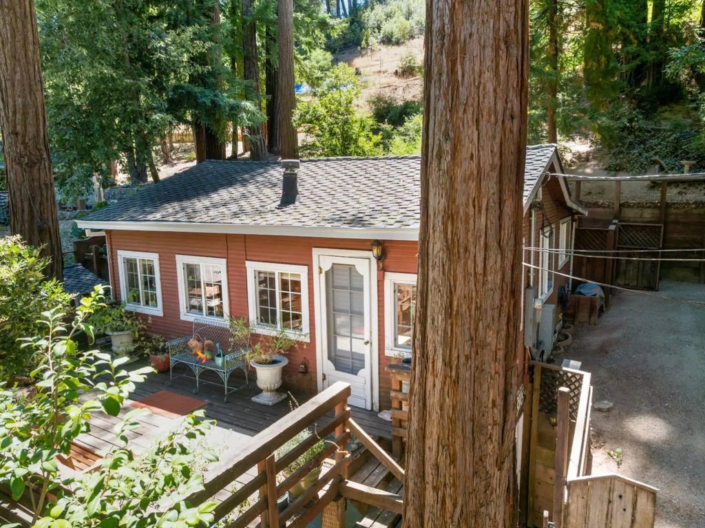 Imagine sipping coffee on the patio surrounded by majestic redwoods, just minutes from Boulder Creek's charming downtown. Whether you're seeking house-hacking opportunities, multi-generational living, or investment income - this property delivers flexibility that's rare to find. Main house is a 2 bd/ 1 bathroom cabin + detached studio unit with kitchenette & full bathroom + unfinished basement unit with full bathroom offers expansion possibilities, AND detached 1 car garage offers tons of storage. Main house features vaulted ceilings, wood paneling, vintage clawfoot tub and that authentic cabin feel. The skylights bring in so much light it will put a smile on your face. There is also a community pool, perfect for those warm mountain days! With TLC this home can be your private redwood oasis. This property will need a new engineered septic system. Priced to sell and ready for your vision. Easy commute access while maintaining that peaceful mountain lifestyle. Don't miss this chance to own multiple units in desirable Boulder Creek!