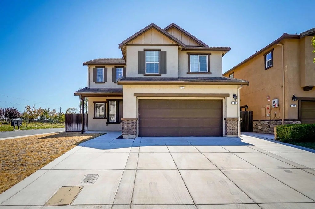 Welcome to this modern, move-in ready home in the highly desirable Emerson Ranch community, offering resort-style amenities including a scenic lake, parks, playgrounds, and walking trailsall just minutes from Iron House Elementary and Delta Vista Middle School. Situated on a sunny corner lot with low-maintenance landscaping, this beautifully maintained home features a bright, open floor plan filled with lots natural light. The main level includes a bedroom and full bath, perfect for guests, home office, or multigenerational living. Inside, you'll find luxury laminate, carpet, and tile flooring throughout, a spacious open-concept kitchen with quartz or granite countertops, a center island with sink, walk-in pantry, and high-end stainless steel appliances. Additional highlights include an enclosed loft currently used as a fifth bedroom (can be easily converted back), pre-wired for solar an EV charge in grage.