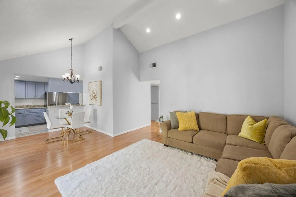Don't miss this unique chance! Explore the desirable upper unit in the peaceful, gated Summerton Community. This rare find boasts a private entry in a tranquil courtyard, with lovely views of a pond, fountain, and redwood tree. This updated 2-bedroom, 1-bathroom unit is 953 SF and features fresh paint, quality upgrades, and high-end finishes. The modern kitchen includes quartz countertops, new recessed lighting, stylish fixtures, a breakfast bar, and newer appliances. The open layout showcases vaulted ceilings and a cozy fireplace. A large sliding door opens to a spacious patio with extra storage. The primary bedroom features a vaulted ceiling, a walk-in closet. Additional perks include an in-unit laundry room with washer and dryer, central A/C and heating, and 2 private parking spaces (1 covered, 1 open). Enjoy resort-style amenities in a prime location near Grand Century Mall and Costco, with easy freeway access (101/280/680) to Downtown San Jose and major tech companies. This quiet, gated community offers privacy and features tennis courts, a swimming pool, green belts, trails, and ponds. The HOA fee covers water/sewer, trash, common area maintenance, master insurance, basic TV cable, and internet. Come see what makes this home special, won't last long!