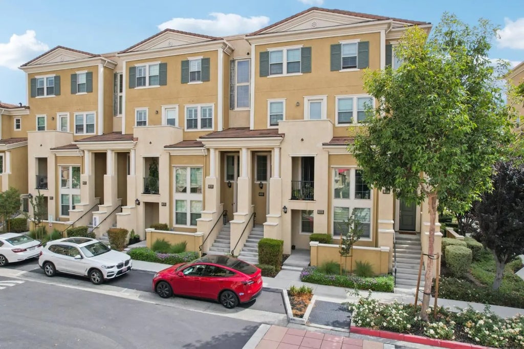 Stunning 3-bedroom, 3-bath townhouse in the quiet, prime location of the Traverse community. Filled with natural light and surrounded by trees, this home offers easy access to the community park, playground, and guest parking. Tastefully upgraded throughout with contemporary cabinets and premium countertops, including an oversized island with sink. Convenient layout features one bedroom and full bath on the main living level. The spacious primary suite includes a walk-in closet and a luxurious bath with dual vanity, deep soaking tub, and separate shower. Low HOA fees with amenities to enjoy. Excellent location within walking distance to Mabel Mattos Elementary, new parks, Great Mall, shopping centers, and future BART. Easy access to freeways, public transit, and major high-tech employers.