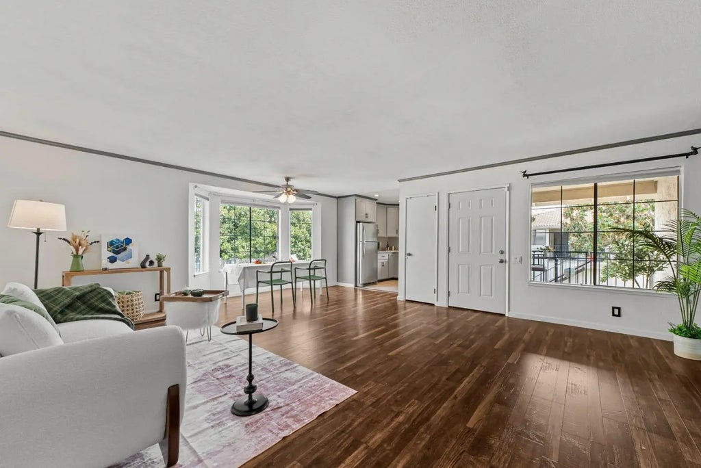 Bright & Spacious End Unit Condo at Kenwood CrosspointeMove-in ready! This rare largest 1B1B floor plan offers an oversized bedroom, spacious living/dining room, and abundant natural light from its desirable end-unit location. Features include a modern kitchen with granite counters, upgraded bath, walk-in closet, in-unit laundry, and a private garage with automatic opener. Community amenities: pool, guest parking, refreshed exteriors. HOA covers water, garbage, roof, and landscaping. Close to The Plant Shopping Center, parks, schools, Downtown San Jose, and major commute routes.