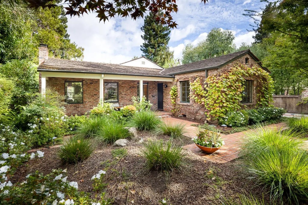 Classic Crescent Park cottage style home with updated interiors and preserved period details. Exterior brick cladding accented with Boston ivy, freshly painted interiors, gleaming hardwood floors, and original metal-framed casement windows. The spacious living room, wrapped in windows and a glass-paned door to the rear yard, features a fluted-mantel fireplace as the focal point. The formal dining room is highlighted by a modern five-light globe chandelier. The bright kitchen has space for a breakfast table and features newly painted taupe cabinetry with white tile countertops and full-height backsplashes, plus all-white appliances including a gas range, dishwasher, and refrigerator. 3 bedrooms and 2 updated dual-entry baths include one with tub and one with frameless-glass shower. The private rear yard with living wall provides raised garden beds, Japanese maples, and expansive brick patios that wrap around to one side of the home. Separate laundry room with washer/dryer, detached one-car garage, abundant off-street parking, and security alarm. Exceptional location just 2 blocks from Eleanor Pardee Park, 1 mile to University Avenue shops and restaurants, and access to acclaimed Palo Alto schools.