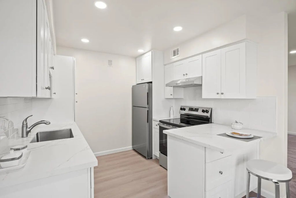 This bright, airy condo offers standout value in San Mateo. Enjoy a remodeled kitchen with white cabinetry, quartz countertops, and new flooring. Both updated bathrooms shine with modern tilework, new vanities, and sleek flooring. Recessed lighting and large windows keep every corner feeling light and welcoming. Move-in ready! 2 parking spots (1 carport) and storage included. This 2/2 is a corner unit with only one shared wall. The condo also includes the patio area in front of the condo perfect for plants, a little table, or a chair to enjoy the sun. Located near Los Prados Park and scenic waterway trails, youll enjoy easy access to local shops, caf s, and commuting routes to both San Francisco and Silicon Valley. All the updates you want, in a location that lets you live the Peninsula lifestyle effortlessly. Please note there are outdoor stairs up to the condo.