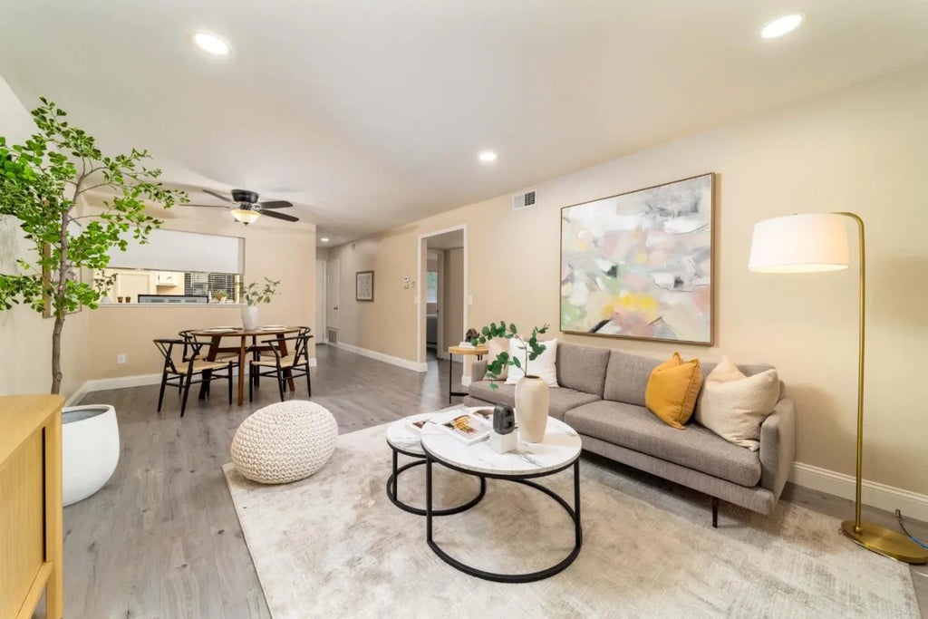 Your future property awaits at this charming, park-esque set 2bdrm/1bath condo in the heart of Silicon Valley. This serene garden escape of mature trees and landscaping where you can unwind to a quiet and cozy updated first floor unit, and yet minutes away from Hwy 101, 87, 85 and 280. Discover cozy living in the heart of San Jose with this charming home. Spanning 888 square feet, this residence offers a comfortable and practical layout. The kitchen is well-equipped, providing space for meal preparation and gatherings, a convenient in-unit stacked washer and dryer and an updated tiled shower retreat. The home features a combination of flooring types, offering both style and functionality. This property is positioned within the San Jose Unified School District, serving the local elementary school community. For your transportation needs, a single-car garage provides secure parking and an additional assigned parking space, along with proximity to VTA, BART and CalTrain services to get you to all your sporting venues, entertainment coliseums, airports, universities, tech and non-tech places of employment alike. Imagine being minutes from it all, and still able to escape from it all once you make this place yours.