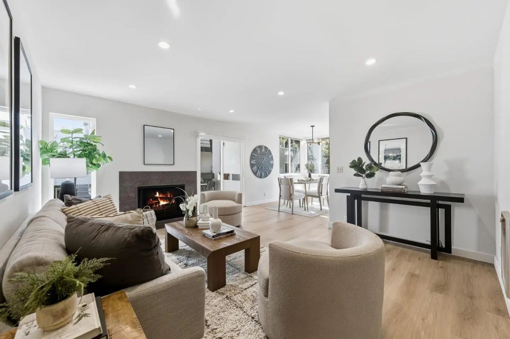 Welcome to the Sand Harbour Community in Foster City! This stylish 2BR/2BA corner unit is the best value in Foster City. Offering 1,042 sq. ft. of modern comfort with new luxury vinyl floors (approved through HOA), updated lighting, including recessed lighting, and a private deck surrounded by greenery. The living room features a wood burning fireplace which flows effortlessly to a dining L with a contemporary fixture, and the eat-in kitchen featuring granite counters, pendant lighting over sink, white appliances, wood cabinets and an in-unit laundry area with additional cabinets. Bathrooms are finished with granite and chrome fixtures, shower over tub. The primary suite includes a generously sized closet. Storage + 1 convenient parking space located right off the back entrance. The community amenities include: a heated pool, spa, clubhouse, fitness center, BBQ area, and super easy elevator access to the unit. Just minutes from Foster City's lagoons, parks, Bridgepoint shopping, Ranch 99 and Costco, highway 101 & highway 92. This unit shows well, bring your most discriminating buyers.