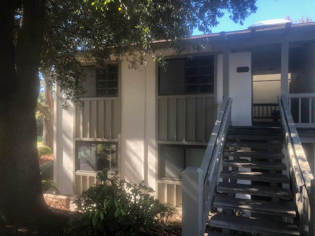 Upstairs end unit with large balcony facing the mountains and the sports court. The Villages is 55+ senior community with golf course, tennis and paddleball courts, clubhouse, walking trails. Primary bedroom with updated bathroom, double closets. Spacious Living room with Dining area