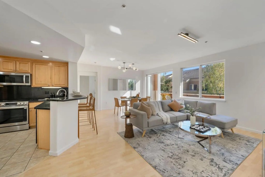 This stunning 2 bedroom and 2 bath single-level luxury condo in Mid Town Plaza is situated in a secure and gated community in the heart of San Jose. The top-floor residence blends together style, comfort, and convenience. An elegant formal entry opens to a bright, open-concept living area with soaring ceilings. The luxurious primary suite offers a generous walk-in closet and ensuite bathroom, while the spacious guest bedroom features its own walk-in closet. Additional features include new carpeting, modern light fixtures, a chefs kitchen with a new convection stove + water filter + granite countertops, central air, and a separate laundry/utility room. Unwind and entertain on your own private balcony, which also offers a large storage closet. Enjoy the convenience of two dedicated side-by-side parking spaces in a secured garage. HOA amenities include a swimming pool, spa, fitness center, community clubhouse, and elevator access. Monthly HOA dues cover water, garbage, exterior landscaping and maintenance, and common area insurance. Very convenient to VTA, CalTrain, grocery stores, dining, entertainment, major tech hubs, parks, private schools, and easy access to major highways. Welcome to modern urban living at its best. This is an opportunity that you do not want to miss!